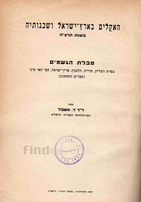 קבץ מאמרים על אקלים ארץ-ישראל / ד. אשבלאשבל, ד. (דב)