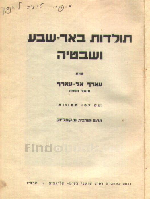 תאור תמונה: שער הספר {תולדות באר-שבע ושבטיה / עארף אל-עארף}