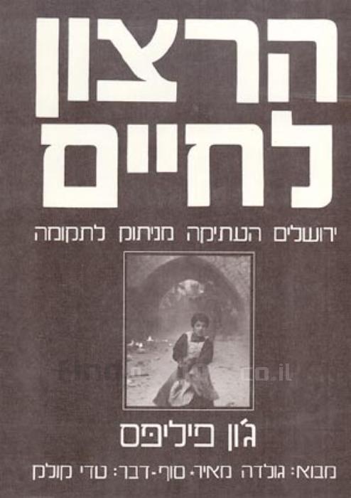 תאור תמונה: שער הספר {הרצון לחיים : ירושלים העתיקה מניתוק לתקומה / ג'ון פיליפס ; מבוא: גולדה מאיר ; סוף-דבר: טדי קולק}