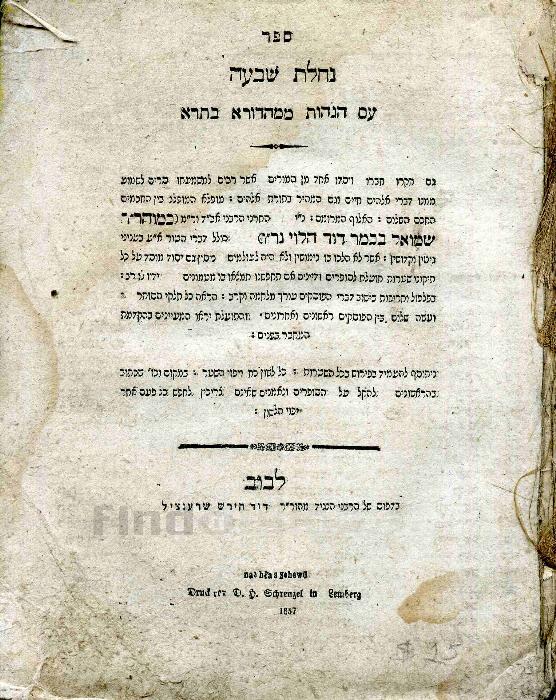 ספר נחלת שבעה עם הגהות ממהדורא בתראשמואל בכמר דוד הלוי