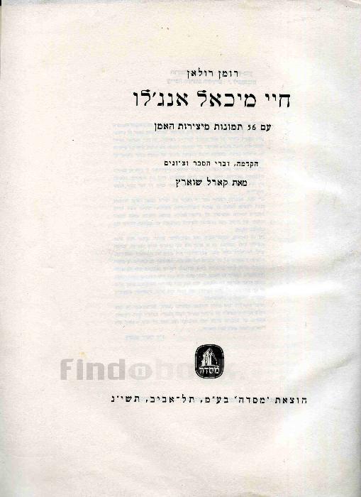 תאור תמונה: שער הספר {חיי מיכאל אנג'לו}