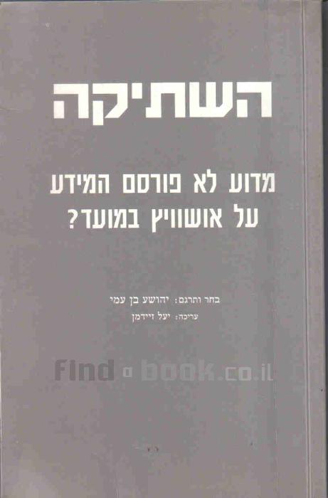 תאור תמונה: שער הספר {השתיקה : מדוע לא פורסם המידע על אושוויץ במועד? / בחר ותרגם: יהושע בן עמי}