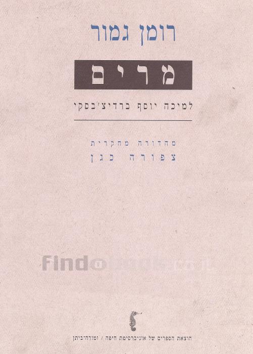 מרים - רומן גמור , למיכה יוסף ברדיצ'בסקי - מהדורה מחקרית, עם הקדשה וחתימת המחברת.מהדורה מחקרית - צפורה כגן