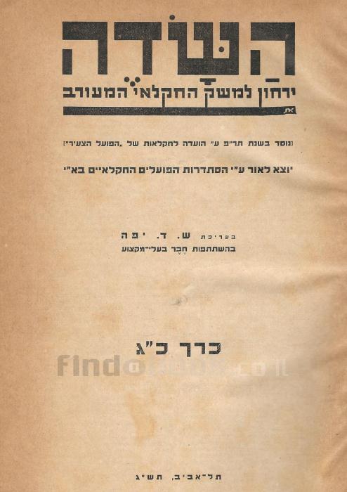 תאור תמונה: שער הספר {השדה - ירחון חקלאי / כרכים י"ג עד כ"ו - 1933 עד 1946 , וכן כרכים מ' - מ"ב - 1960-1962}