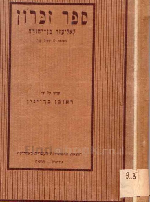 ספר זכרון לאליעזר בן-יהודה (למלאת לו ששים שנה) / ערוך על ידי ראובן ברייניןברינין, ראובן, 1862-1939