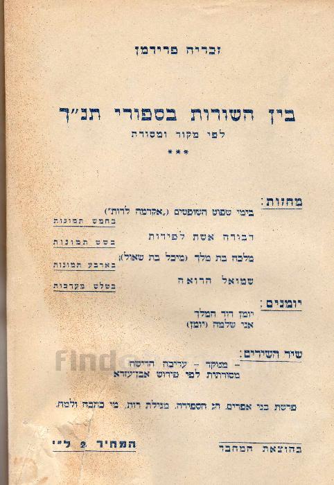 תאור תמונה: שער הספר {בין השורות בספורי תנ"ך : המחזת מקרים בתולדות ישראל : לפי מקור ומסורת / זכריה פרידמן}