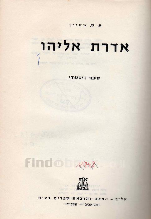 אדרת אליהו : סיפור היסטורי / א"ש שטייןשטין, אברהם שמואל בן ישראל, 1911-1960
