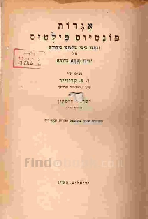 אגרות פונטיוס פילטוס : נכתבו בימי שלטונו ביהודה אל ידידו סנקא ברומא / נערכו ע"י ו.פ. קרוזיירקרוזיר, וילים פרסיול, 1879-1944