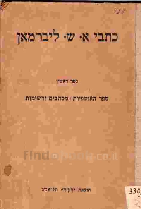 תאור תמונה: שער הספר {כתבי א. ש. ליברמאן : ספר ראשון, ספר האוטפיות, מכתבים ורשימות / אהרן שמואל ליברמאן}