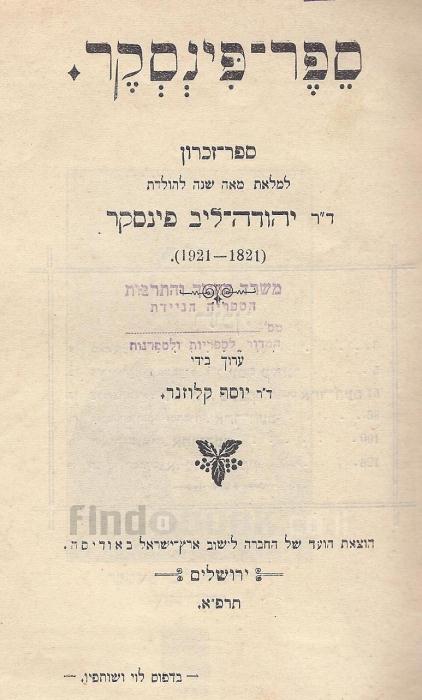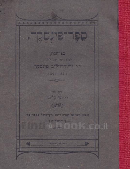 ספר פינסקר - ספר זכרון במלאת מאה שנה להולדתוערך: דר' יוסף קלוזנר