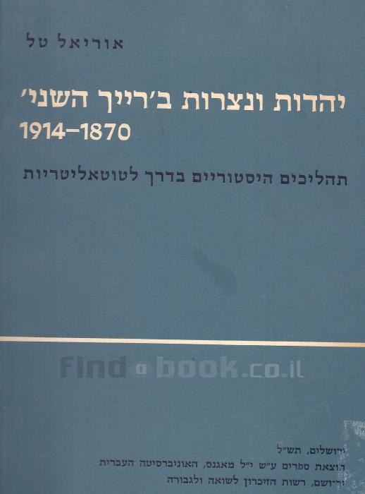 יהדות ונצרות ברייך השני (במצב טוב מאד, המחיר כולל משלוח)אוריאל טל
