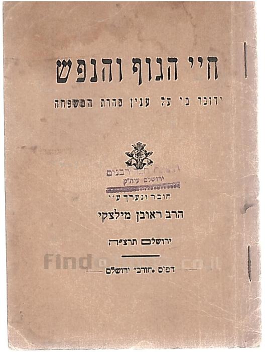 חיי הגוף והנפש ידובר בו על ענין טהרת המשפחהראובן מילצקי