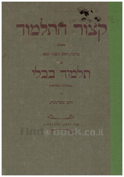 קיצור התלמוד - מסכות ראש השנה יומא מן תלמוד בבלימסודר ומפורש ע"י חיים טשרנוביץ