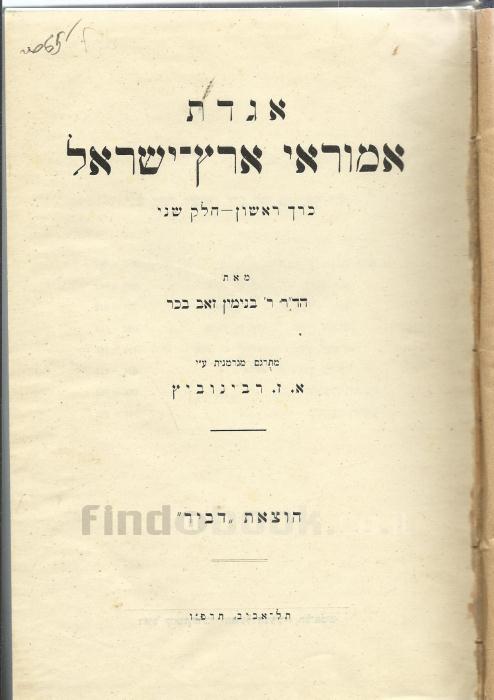 אגדת אמוראי ארץ ישראל כרך ראשון חלק שניהד'ר ר' בנימין זאב בכר