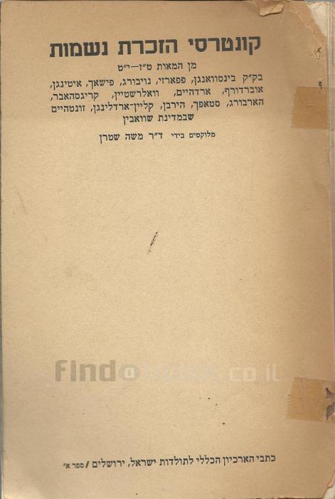 קונטרסי הזכרת נשמות מן המאות ט"ז - י"טליקט: ד"ר משה שטרן