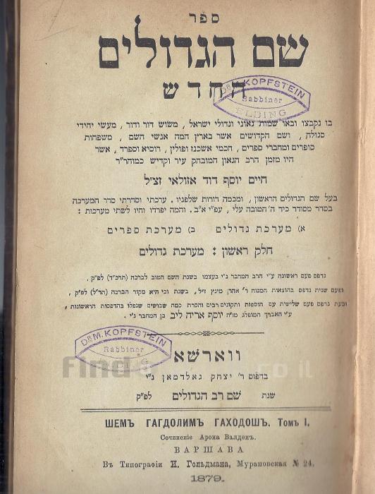 ספר שם הגדולים החדש (וורשה 1879)חיים יוסף דוד אזולאי