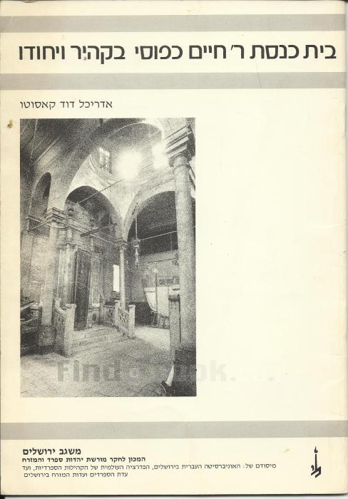 תאור תמונה: שער הספר {בית הכנסת ר' חיים כפוסי בקהיר ויחודו}