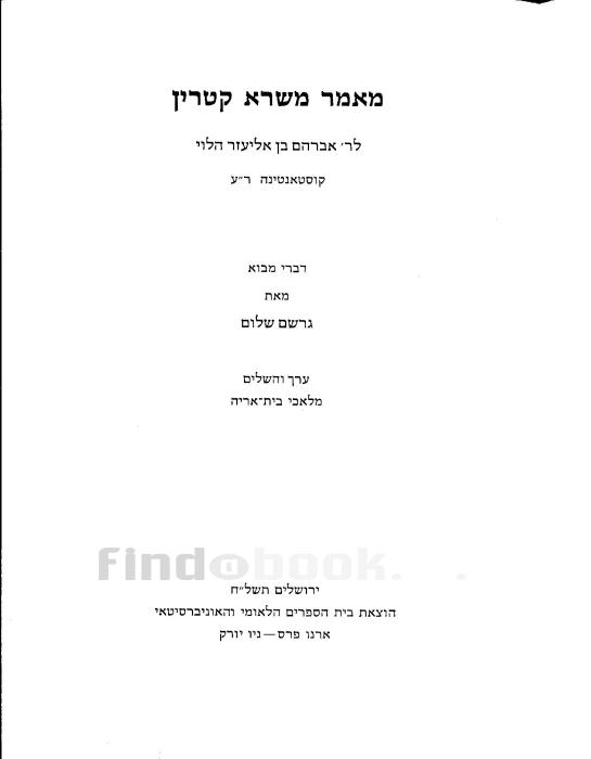 מאמר משרא קטריןאברהם בן אליעזר הלוי