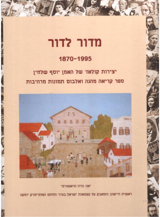 תאור תמונה: שער הספר {מדור לדור, יצירות קולאז' של האמן יוסף שלחין}