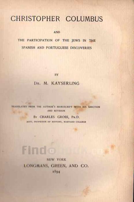 תאור תמונה: שער הספר {Christopher Columbus and the Participation of the Jews in the Spanish and Portuguese Discoveries}