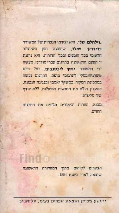 • לחצו לפרטיםוילהלם טל : תרגום / לפרידריך שילר