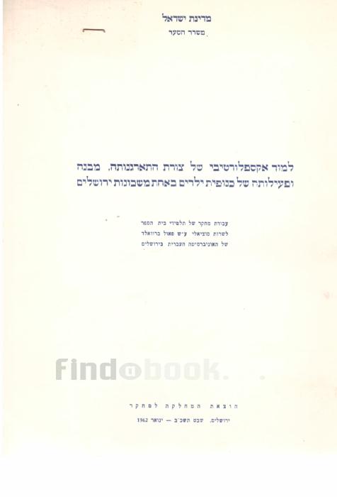 למוד אקספלורטיבי של צורת התארגנותה, מבנה ופעילותה של כנופית ילדים באחת משכונות ירושלים, עבודת מחקר שמרים הראל, רחל הירש, יעקב גיל