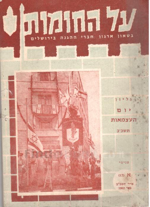 • לחצו לפרטיםעל החומות - בטאון ארגון חברי ההגנה בירושלים, גליון יום העצמאות תשכ