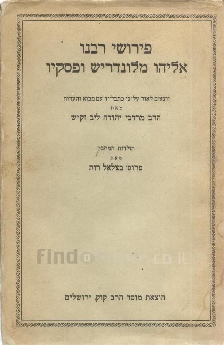 פירושי רבנו אליהו מלונדריש ופסקיוהרב מרדכי יהודה ליב