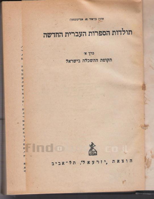 תולדות הספרות העברית החדשה כרך שני תקופת התחיה בישראל