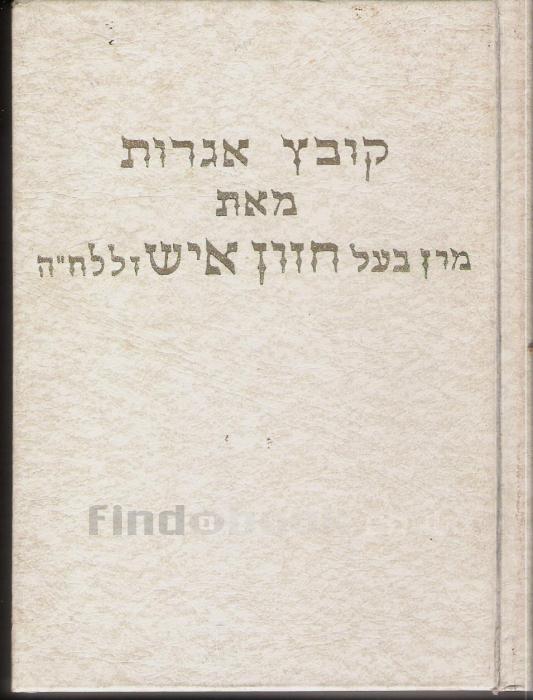 קובץ אגרות מאת מרן בעל חזון איש זללה בעל הספר? לחץ כאן לעריכה/הסרה מוכר ספר זהה? לחץ כאן להוספה למאג
