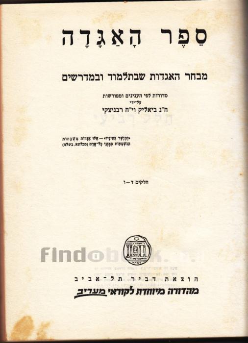 ספר האגדה.מבחר האגדות שבתלמוד ובמדרשיםח"נ ביאליק וי"ח רבניצקי