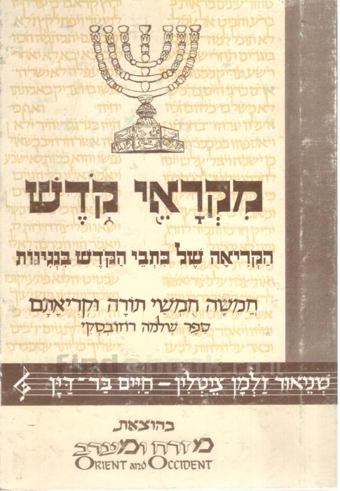 תאור תמונה: שער הספר {מקראי קדש, הקריאה של כתבי הקדש בנגינות - חמשה חמשי תורה וקריאתם ספר שלמה רוזובסקי}