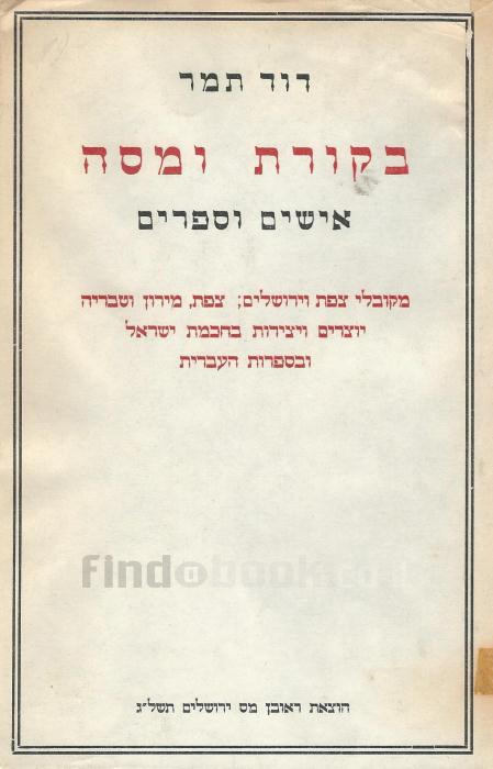 בקורת ומסה - אישים וספרים (במצב ט"מ, המחיר כולל משלוח)דוד תמר