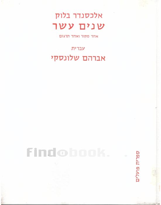 • לחצו לפרטיםשנים עשר - אחד מקור ואחד תרגום - עברית ורוסית, תרגום אברהם שלונסקי / אלכסנדר בלוק