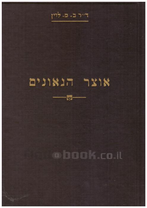 אוצר הגאונים - כרך שלישי: מסכת עירובין, מסכת פסחים (כחדש, המחיר כולל משלוח)בנימין מנשה לוין