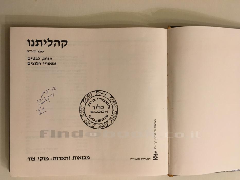 קהליתנו : קובץ תרפ"ב – הגות, לבטים ומאוויי חלוציםמוקי צור, מבוא והערות