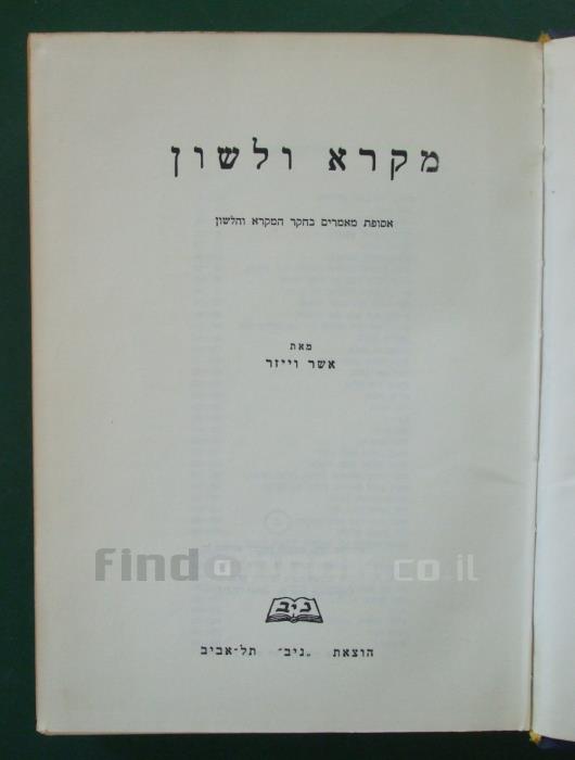 מקרא ולשון : אסופת מאמרים בחקר המקרא והלשון [הוצאת ניב, 1965] / אשר וייזראשר וייזר