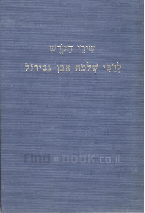 • לחצו לפרטיםשירי הקדש לרבי שלמה אבן גבירול א-ב