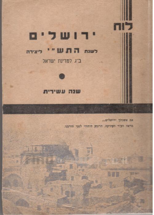 לוח ירושלים לשנת התש"ט ליצירה, א-ב למדינת ישראל - שנה תשיעית