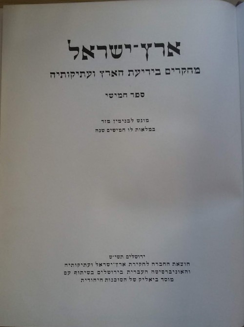 • שם ההוצאה החברה לחקירות ארץ ישראל ועתיקותיה