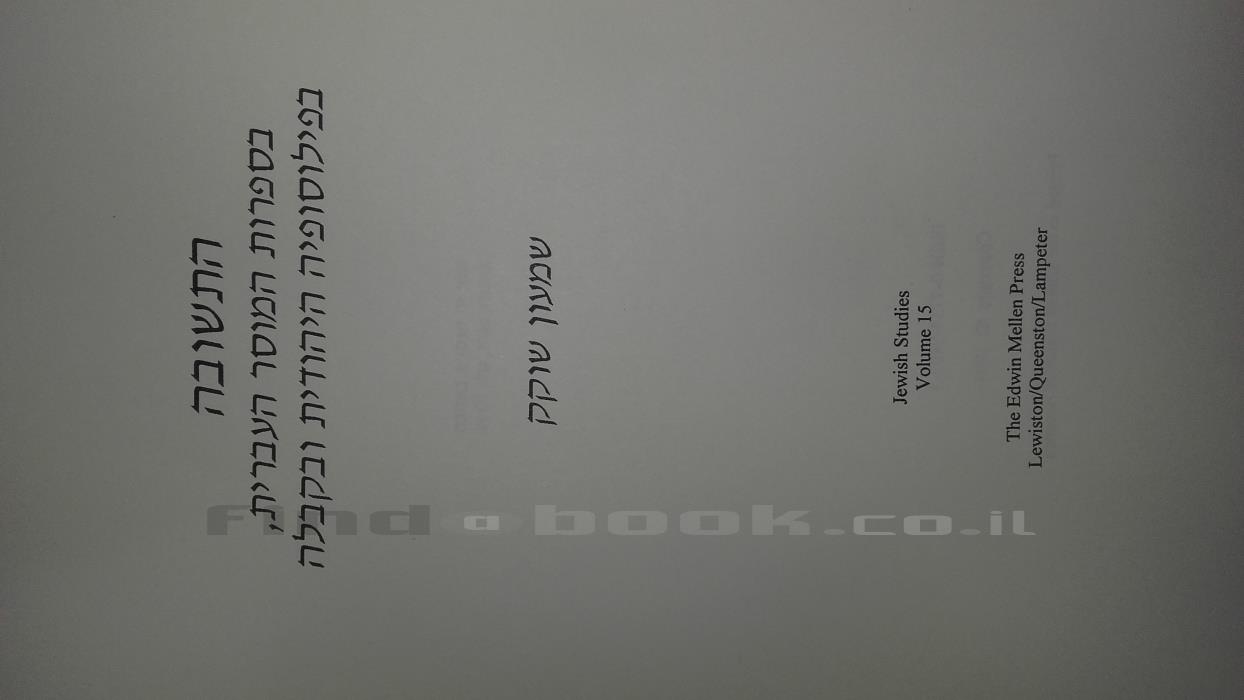 תאור תמונה: שער הספר {התשובה בספרות המוסר העברית בפילוסופיה היהודית ובקבלה}