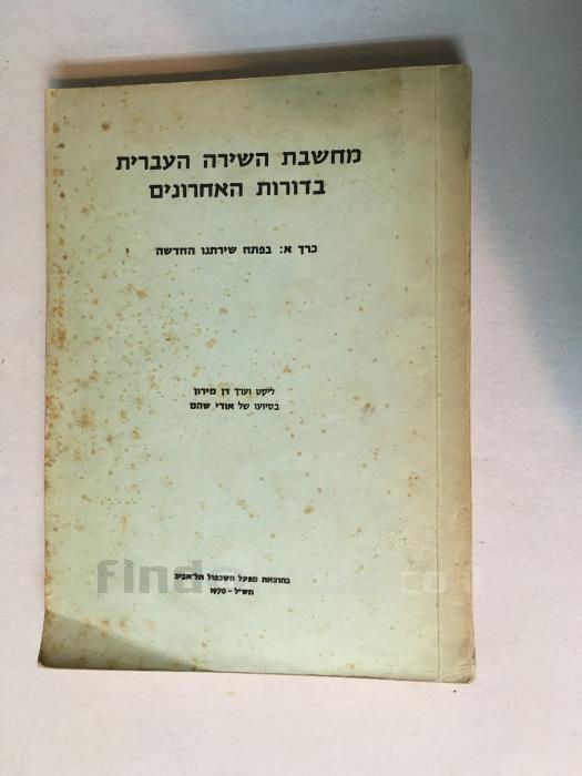 תאור תמונה: שער הספר {מחשבת השירה העברית בדורות האחרונים-כרך א'}