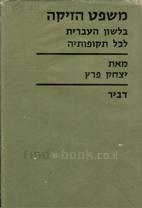 • לחצו לפרטיםמשפט הזיקה בלשון העברית לכל תקופותיה [הוצאת דביר, 1967]