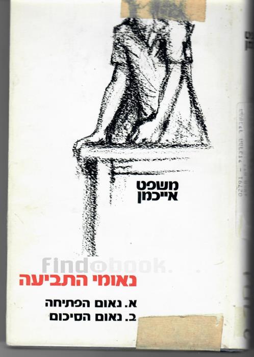 תאור תמונה: שער הספר {משפט אייכמן - נאומי התביעה / א- נאום הפתיחה, ב- נאום הסיכום. (במצב טוב מאד, המחיר כולל משלוח)}