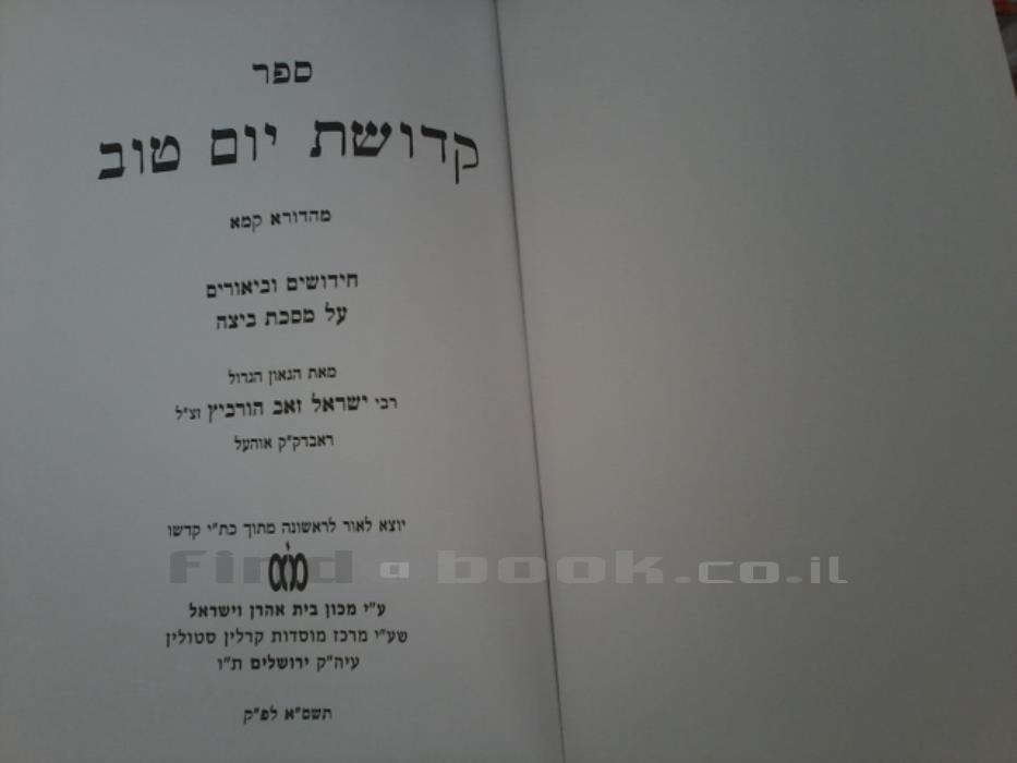 תאור תמונה: שער הספר {קדושת יו׳׳ט ע׳׳מ ביצה}