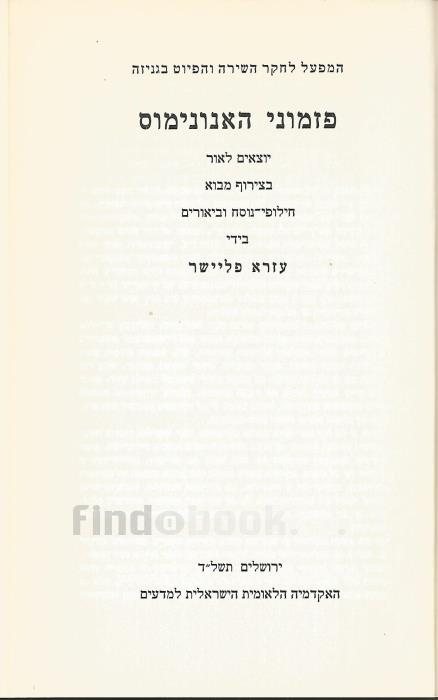 פזמוני האנונימוסמבוא: עזרא פליישר