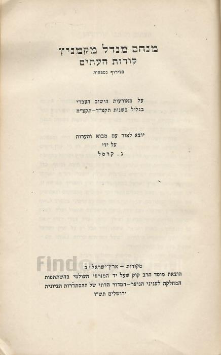 קורות העתים - על מאורעות הישוב העברי בגליל בשנות תרצ"ד-תקצ"חמנחם מנדל מקמניץ