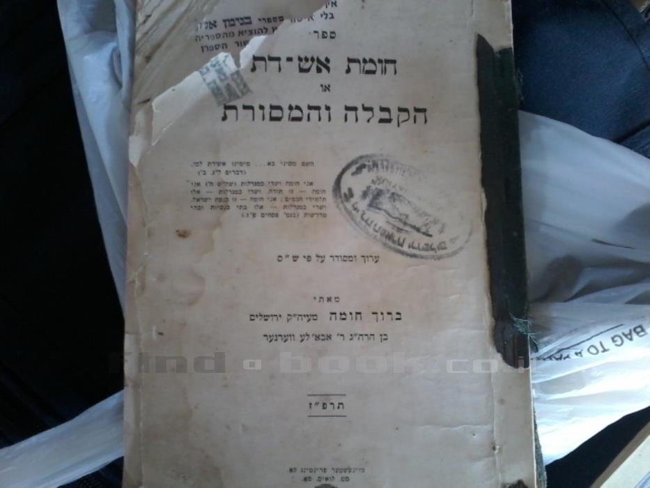 תאור תמונה: שער הספר {חומת אש -דת או הקבלה והמסורת}