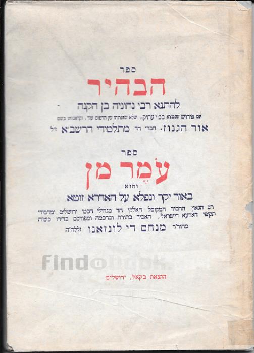 תאור תמונה: שער הספר {ספר הבהיר עם אור גנוז, ספר עמר מן}