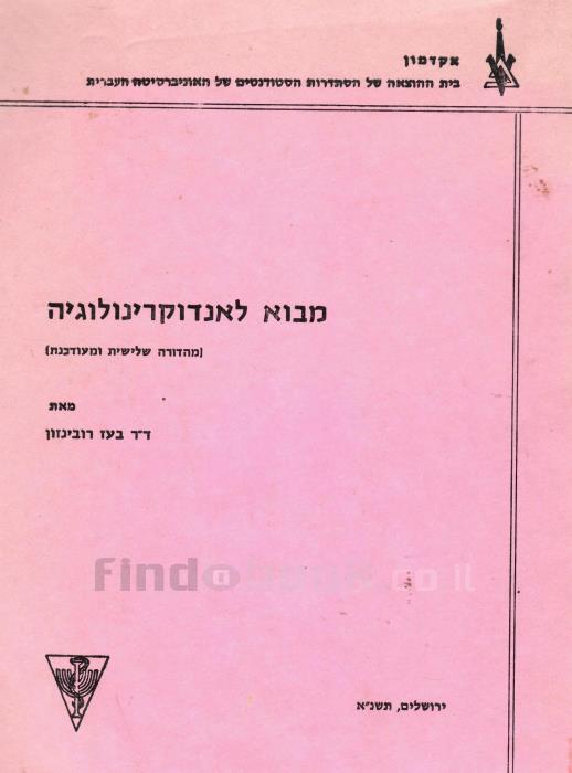 מבוא לאנדוקרינולוגיה (במצב טוב, המחיר כולל משלוח)בעז רובינזון
